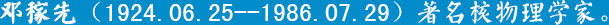 安徽省怀宁县人,中共党员,中国科学院院士。1945年毕业于西南联合大学物理系,后在北京大学任教。1948年10月赴美国普渡大学物理系留学。1950年获物理学博士学位,同年回国。1958年从中国科学院近代物理研究所调入第二机械工业部第九研究所(中物院前身),领导核武器的理论设计。历任理论部主任、副院长、院长,国防科工委科技委副主任,核工业部科技委副主任等职。曾任中共第十二届中央委员会委员。 邓稼先是中国核武器研制与发展的主要组织者、领导者之一。从原子弹、氢弹原理的突破和试验成功及其武器化,到新一代核武器的重大原理突破和研制试验,均做出了重大贡献。